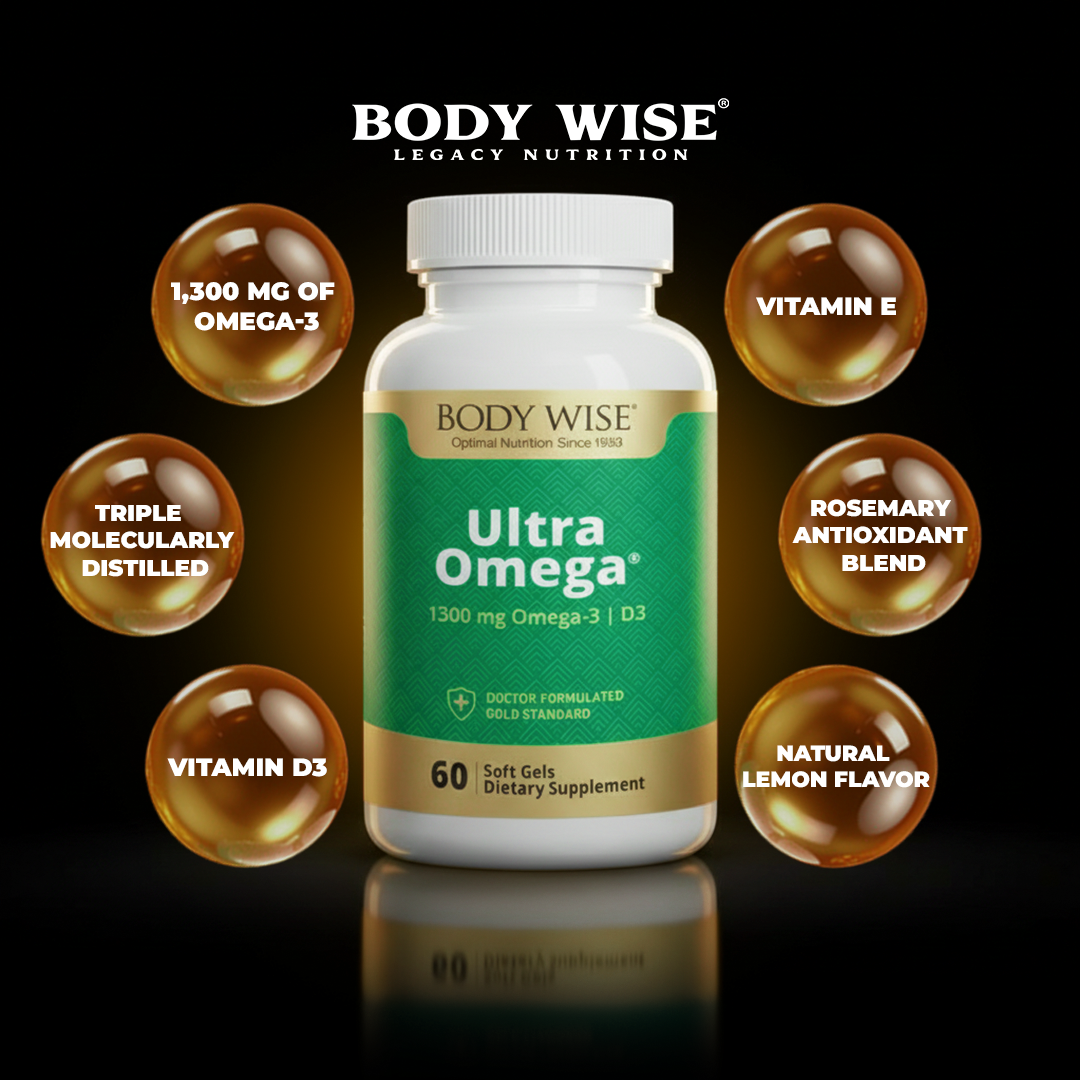 Finished with a natural lemon flavor to eliminate fishy aftertaste and enhanced with vitamin D3 for immune support, Ultra Omega reflects Body Wise's long-standing commitment to purity, potency, and science-driven nutrition.